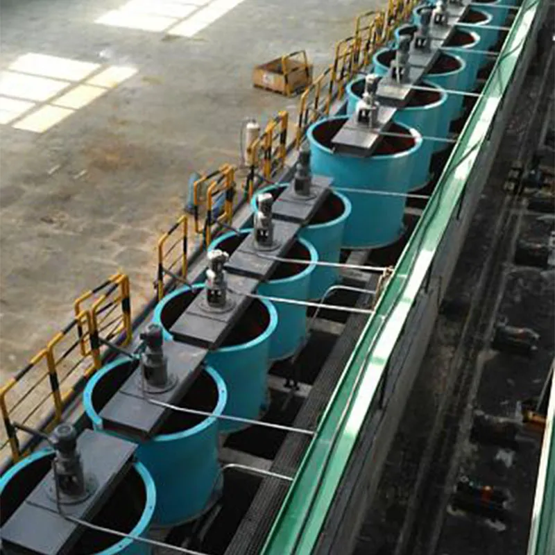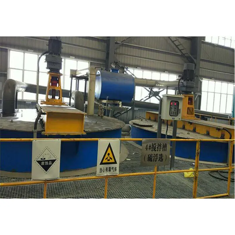 Основные характеристики смесительного оборудования серии CGJ: Конструкция использует низкоскоростную, крупную крыльчатку, оснащенную направляющими пластинами и перегородками для создания W-образного потока в пульпе, что обеспечивает низкое энергопотребление, низкий износ и эффективное продление общего срока службы оборудования. Оборудование обеспечивает высокую интенсивность перемешивания, предотвращает образование осадка и обеспечивает высокую суспензию пульпы. Направляющий конус в нижней части резервуара устраняет «мертвые зоны» в процессе перемешивания, предотвращая накопление частиц. Его можно использовать для перемешивания высококонцентрированных пульп с плотностью руды ≥3,0 т/м³ и концентрацией пульпы 30–50%. Материал (пульпа) поступает в конусообразную смесительную камеру сверху резервуара и первоначально смешивается с реагентами, добавляемыми сверху. Затем он поступает в центр резервуара, где дополнительно перемешивается и выгружается через верхнее переливное отверстие. Это предотвращает «короткое замыкание» материала и обеспечивает полную реакцию реагентов на поверхности материала.