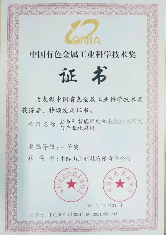 В 2019 году Чжунцзи Шаньхэ внесла вклад в проект «Ключевые технологии и оборудование для чистой плавки цинка и эффективного использования», который получил вторую премию Национальной премии за достижения в области науки и техники. В 2021 году проект «Исследование и промышленное применение полной серии ключевых технологий интеллектуального электроосаждения цинка» получил первую премию Китайской премии в области науки и техники в сфере цветных металлов. С момента своего основания компания ZHONGJI SUNWARD подала в общей сложности 130 патентов, в том числе 50 патентов на изобретения, постоянно способствуя развитию отрасли благодаря своим инновационным возможностям.